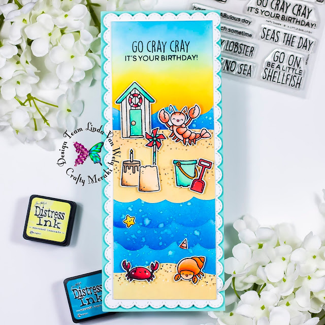 Hi everyone! Today I'm over at the Crafty Meraki blog with a fun slimline card! I know for most of you it's fall going on winter times, but I wish it could be summer all year long! I created this fun card with a summer feel with the A Little Shellfish stamp set from Heffy Doodle!