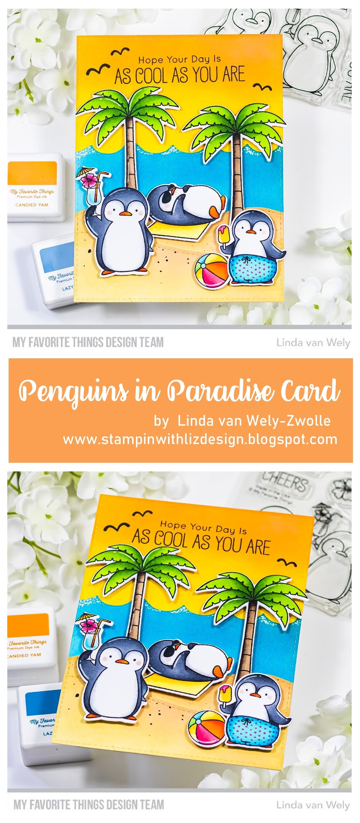 BeantwoordenVerwijderenThis penguin scene beach card is super sweet! Amazing details and coloring! I wish my suit was as colorful and I had a cool drink in hand, paw?! :)
