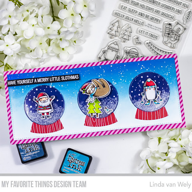 Hi everyone! Welcome to the Countdown for the new Holiday Snow Globe Card Kit at MFT Stamps, just two days to go for this amazing release! I'm sharing a colourful card today, created with the new Snow Globe Singles stamp set!